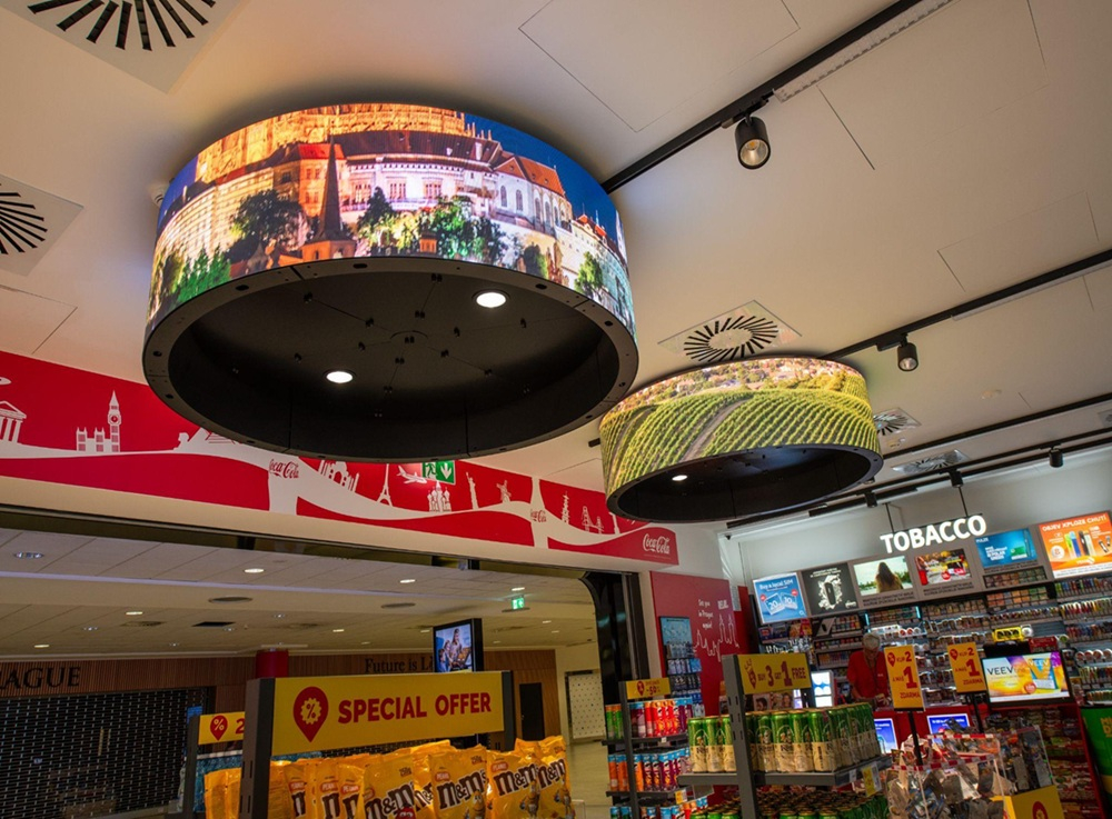 „Letiště není jednoduché prostředí jak z pohledu konkurence, tak z pohledu techniky. Tím, že funguje 24/7, musíte umět pracovat s podmínkami a osvětlením v každé části dne. LED shopfront s celkovým počtem 7,5 milionu pixelů a roztečí 1,5 mm, který zajišťuje dobrou svítivost i obraz z každého úhlu, jsme zvolili právě proto, že zvládne i toto náročné prostředí,” komentuje Marek Vyskočil, jednatel společnosti BlueTouch Media.