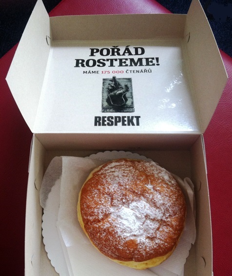 Časopis Respekt slaví svých 175 tisíc čtenářů netradiční direct marketingovou kampaní (DM). V bílé krabici s nápisem Respekt a kresbou Pavla Reisenauera posílá zadavatelům reklamy obří koblihy, kterými připomíná, že počet jeho čtenářů stále roste. Čtenost v prvním pololetí dosáhla 175 tisíc, což bylo o 21 % více než ve stejném období loni.