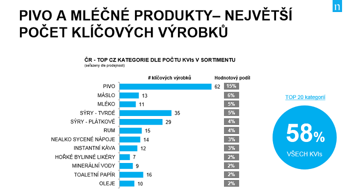 Michal Čepek, Sales Effectiveness Leader CZ&SK Nielsen, ukázal výzkum, kdy je možné identifikovat klíčové výrobky, které tvoří základ prodejů a na ty se zaměřit. „Je třeba řešit ceny u 6 % výrobků, které tvoří 27 % obratu a nic jiného,“ říká. Výzkum analyzoval 53 tisíc výrobků (balené potraviny a drogerie) a jen 1 % z nich tvořily nejdůležitější výrobky na českém trhu. Prvních 20 kategorií tvořilo 58 % veškerého obratu.