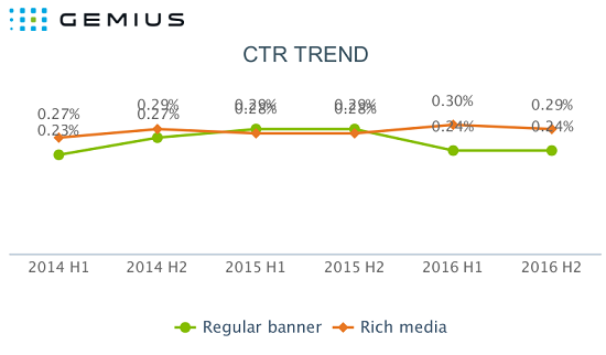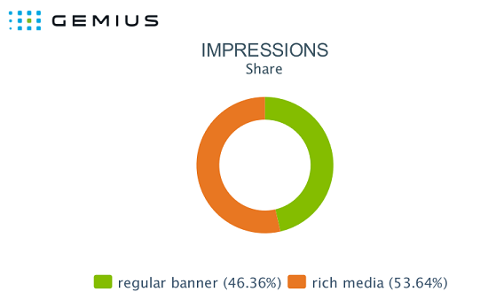 Česká republika má druhý nejvyšší podíl rich media formátů v online kampaních v regionu střední a východní Evropy (CEE). Tyto reklamy dosahují také více než polovinu všech impresí (53 %). U rich media bannerů byla zaznamenána vysoká míra prokliku na mobilních zařízeních – na tabletech 2,4 % a na smartphonech 2,07 %. To má být o 0,5 % více než v první polovině roku 2016. Data přináší zpráva AdMonitor od společnosti Gemius.