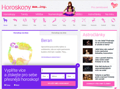 Vydavatelství Ringier Axel Springer CZ tento týden zahájilo provoz webové stránky zaměřené na horoskopy. Na stránce horoskopy.blesk.cz naleznou čtenáři horoskopy či prognózu tarotových karet. Kromě těchto známějších forem předpovědí nabízí web také čínské a indiánské horoskopy, lunární kalendář, kyvadlo, čínské štěstíčko a snář s tisícovkou hesel.