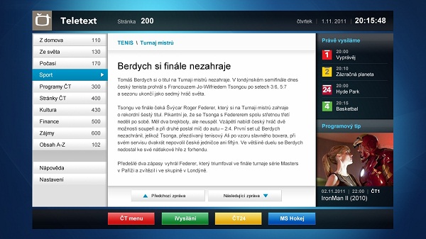 Jak jsem naznačila, nejdál jsou v Německu, kde tyto služby nerozvíjí pouze veřejnoprávní subjekty ARD a ZDF, ale i celá řada soukromých. Mimořádnou pozornost věnují HbbTV také ve Francii. Jako vzorovou aplikaci užití HbbTV představila France Télévisions tu k tenisovému grandslamovému turnaji Roland Garros. A od podzimu letošního roku šli s HbbTV i do terestriky. Jedná se o zpravodajskou aplikaci, která zahrnuje nejen domácí, regionální a zahraniční zprávy, ale i předpovědi počasí a programového průvodce. Zároveň testy probíhají v dalších částech Evropy, např. v Nizozemsku a Španělsku. Takže věříme, že se tento standard nakonec prosadí na starém kontinentu ve velké míře.