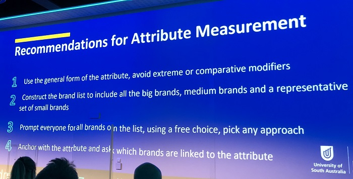 Podle Romaniuk tak nelze mít stejná kritéria a benchmarky pro různé značky. Zavádějící může být také špatné využívání metriky brand awarness (povědomí o značce) a způsoby jejího měření. Sledování „top of mind“ (první na mysli) nemusí nutně znamenat nejlepší výsledek (například nezohlední ty, kteří si značku potenciálně teprve vyhledají). „Všechna měření vycházejí ze stejného paměťového souboru. Když lidem nedáme nápovědu, tak ti, kteří značku nekupují, to mají těžší.“ Svoji roli také hraje způsob kladení dotazů, opět zejména pro „nekupující“. Použití obecné formulace „mám rád/a tuto značku“ přinese jiné výsledky než použití silnějšího hodnocení „tato značka je lepší než ostatní“ a výrazněji se projeví opět u značek, které zákazníci nekupují. Zúžení výběru se pak promítá do následné otázky (priming) a brání tomu, aby si zákazník vyvolal z paměti něco dalšího (inhibice). „To vede ke zkreslenému pohledu na výkon značky, kdy velké značky vypadají lépe a malé naopak hůř,“ uzavřela Jenni Romaniuk.