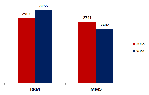 Oproti letošnímu roku tak projekce zastupovaných rádií a počtu posluchačů v roce 2014 vypadá následovně: RRM si polepší o cca 350 tis. posluchačů, zatímco MMS si pohorší o cca 340 tisíc posluchačů. Protože počet posluchačů, jejichž rádia RRM v současnosti zastupuje, je vyšší o přibližně 160 tis. posluchačů, náskok RRM se v příštím roce zvýší na více než 850 tisíc posluchačů. Jak už bylo uvedeno výše, v podílu na poslechovosti rozhlasových sítí bude rozdíl cca jedenácti procentních bodů.
