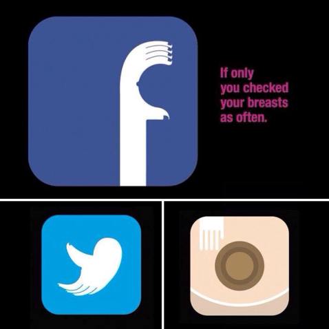Nadace Breast Cancer Foundation k motivaci volí paralelu se sociálními sítěmi. Vizuály připravila singapurská agentura DDB.