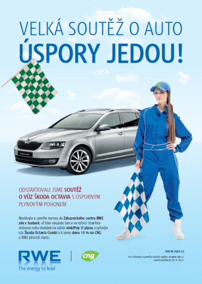Společnost RWE odstartovala letní kampaň, jež podporuje soutěž „Úspory jedou“ pro stávající i nové zákazníky o auto Škoda Octavia Combi s úsporným plynovým pohonem.