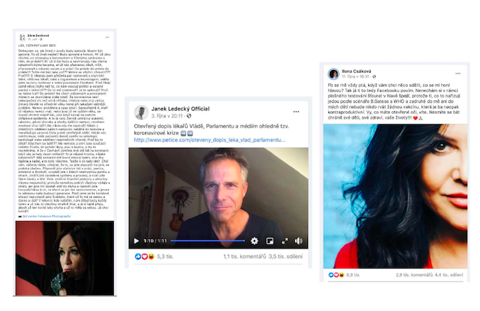 Když v březnu pandemie propukla, původně se téma covidu-19 jen nabalilo na klasické dezinformační schémata. Na jaře se tak objevovaly články o tom, že virus roznáší američtí vojáci v rámci cvičení po Evropě nebo že byl zakopaný v bedně na ambasádě ve Wu-chanu. Narativy tak zůstaly namířené hlavně proti USA, EU nebo NATO. Nicméně podzimní druhá vlna je v tomto ohledu zcela jiná, témata se posunula do osobní roviny, což bylo vidět i na tom, že se do role znalců tématu pasovaly různorodé celebrity, které ať už vědomě, či nevědomě šířily dezinformace. Najednou tedy dezinformace neřeší jen pět lidí ze sta, ale týkají se každého z nás. Dnes neexistuje člověk, který by se s dezinformacemi nesetkal.