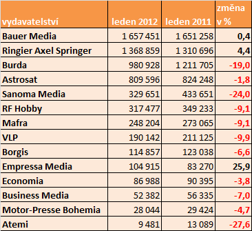 Vydavatelství Sanoma Media a Atemi zaznamenala v letošním lednu poklesy