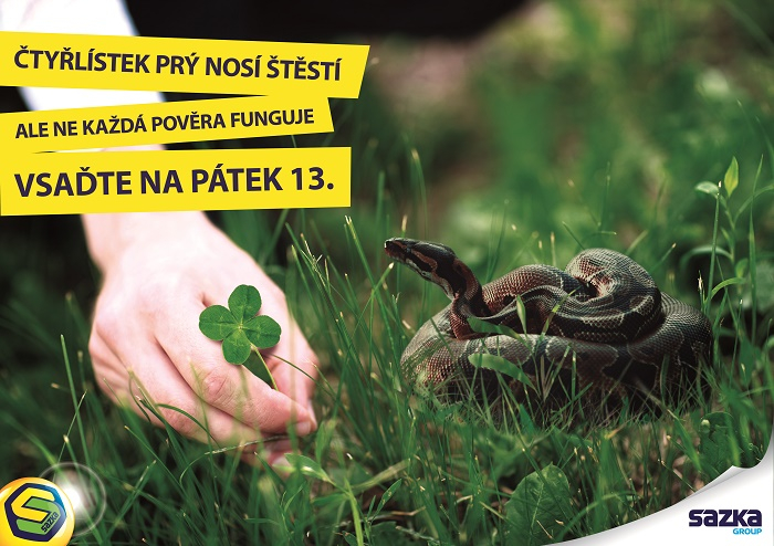 Sazka na blížící se pátek třináctého zopakuje svou kampaň z loňského podzimu. V ní si hraje s pověrami, které se pojí se štěstím a které ne vždy fungují, a motivuje tak lidi, aby si vsadili právě na „smolný“ den. Kampaň se objeví v televizi, tisku, outdooru, rádiu a také na internetu.