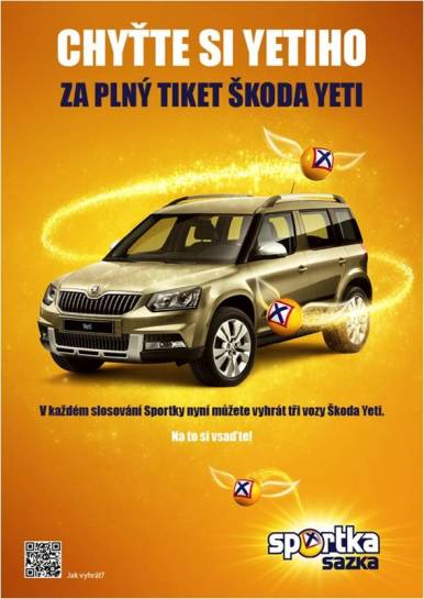 V nové kampani se se symbolem Sportky nadále pracuje. Zatímco v předchozí kampani přinášel míček výhry jednotlivcům, nyní je zdůrazněno množství výherců. V televizi budou nasazeny dvě varianty spotů. První z nich komunikuje upravenou Sportku, tedy novinky v podobě vyšších vkladů, vyšších výher a více výherců. Druhá z variant se zaměří na věcnou prémii v podobě automobilu Škoda Yeti, kterou mohou vyhrát hráči na základě čísla plného tiketu. Spoty byly natáčeny v Berouně a Kolíně.