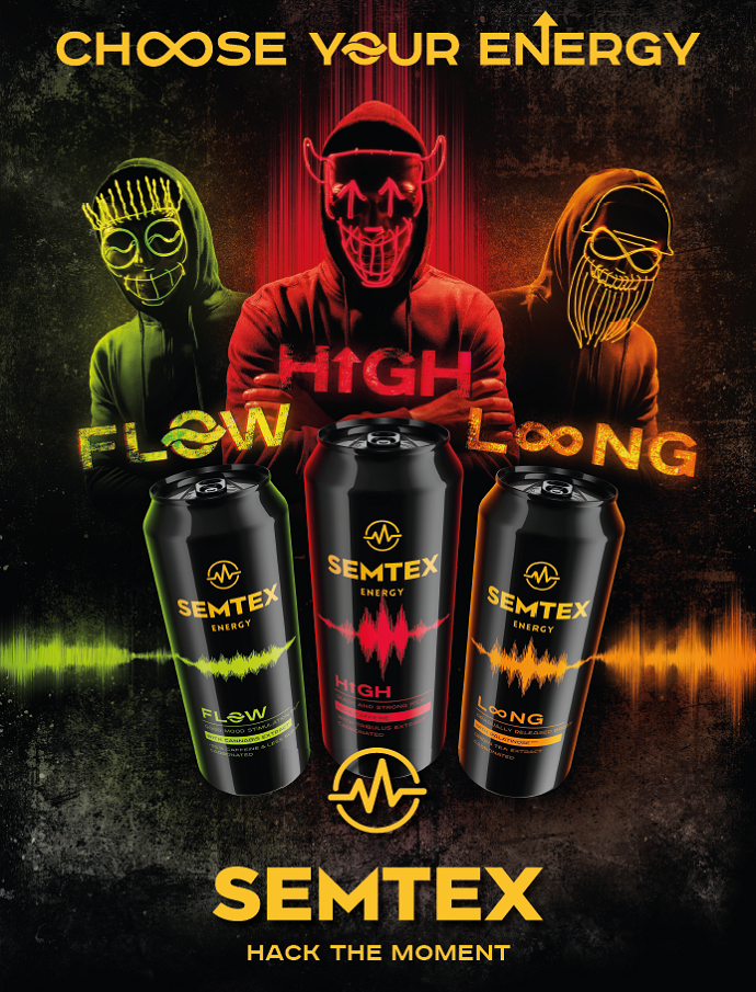 nabízí Semtex se svou novou řadou energetických nápojů.