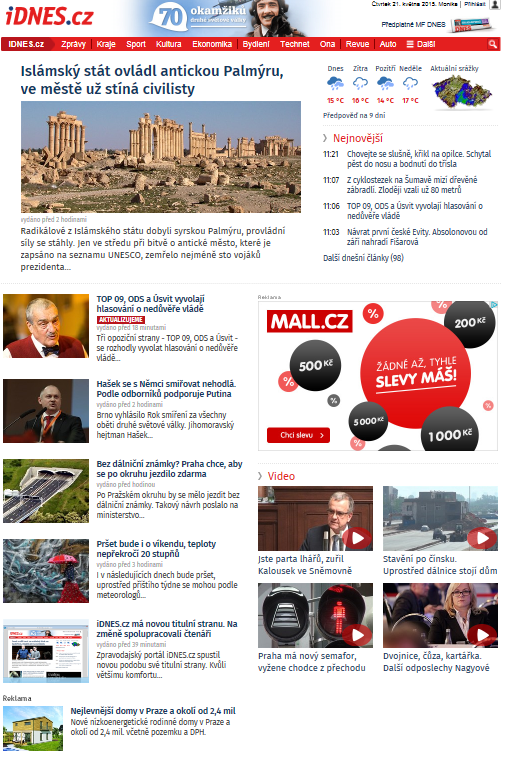 Zpravodajský portál iDnes.cz spustil novou podobu své titulní strany. Má být přehlednější a s rozhýbanou navigací. Na novém vzhledu se podíleli i čtenáři, kteří se zapojili do testování. Testovací období nové titulní strany iDnes.cz trvalo několik týdnů a programátoři průběžně reagovali na požadavky a chování čtenářů na stránce.