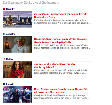 V rámci úprav domovské stránky tuzemské internetové jedničky Seznam.cz došlo v druhé polovině letošního roku i k rozšíření nabízených článků na home page o texty, které vznikají na různých webech českého internetu. Seznam.cz nazval tuto rubriku „Další zajímavé články z českého internetu“, v rámci které přináší odkazy na články různých provozovatelů – mezi nimi jsou i hlavní konkurenti Seznamu nebo provozovatelé střední či menší.