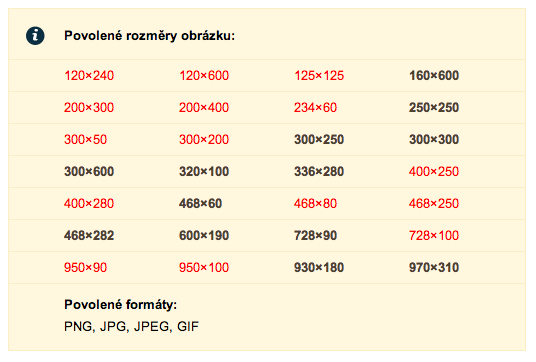 Od začátku tohoto týdne je možné do Skliku nahrávat nové rozměry bannerů. Až do 31. července je možné nahrávat a používat i bannery, které nebudou nadále podporovány. Nepodporované formáty bannerů budou i nadále aktivní a budou se zobrazovat v obsahové síti Skliku, ale po 1. srpnu nebude možné vytvořit nový banner v daných rozměrech.