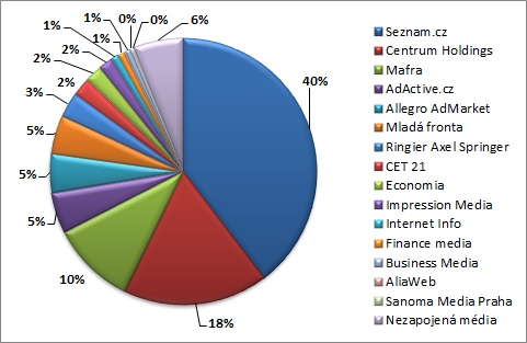 Už téměř 60 % monitorovaného objemu bannerové online reklamy směřuje k provozovatelům Seznam.cz a Centrum Holdings, 40 % přitom připadá na tuzemskou internetovou jedničku. Vyplývá to z monitoringu online reklamy AdMonitoring, který měří bannerovou reklamu. Oproti stejnému období loni se tak podíl Seznam.cz na celkovém objemu podle stejného zdroje zvýšil – a to z 34 % na 40 % v letošním prvním pololetí.