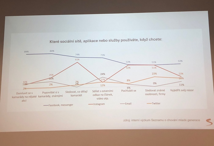 Z pohledu užívání sociálních sítí panují u mladých velké rozdíly v tom, na co kterou používají. Ke sledování svých přátel a známých osobností čím dál více preferují Instagram. U sdílení článků a videí však stále vede Facebook.