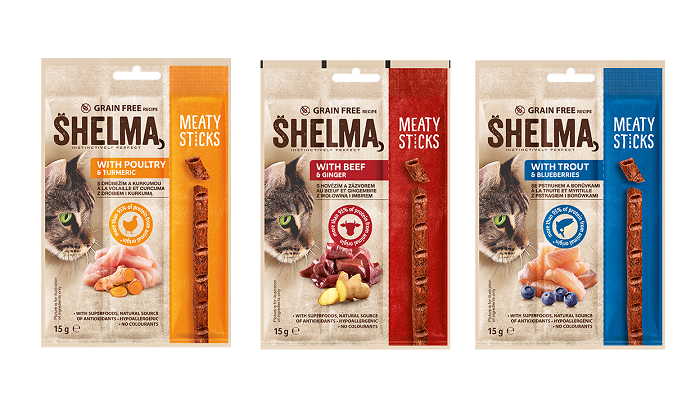 Prémiová značka kočičích krmiv Shelma vstoupila do nového segmentu v oblasti výživy koček – kočičích pamlsků. Shelma tak nyní svým portfoliem zasahuje i do nejdynamičtěji rostoucí a nejprofitabilnější kategorie ve výživě koček, a to s pamlsky Shelma Meaty Sticks. Zákazníci je mohou kupovat na pultech vybraných hypermarketů jako Globus, Kaufland, COOP, Tesco, Albert či e-shop Alza.cz nebo Rohlík.