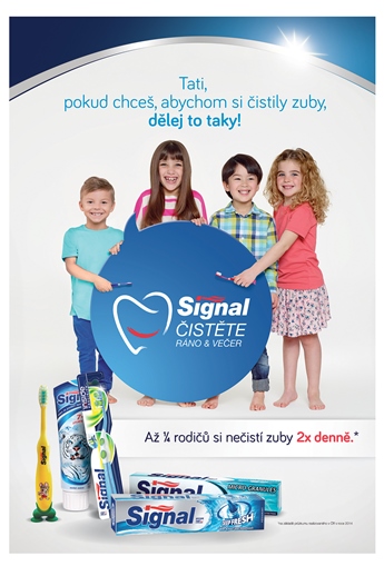 Značka Signal cílí se svou letní kampaní na rodiny s dětmi. Cílem kampaně je přimět rodiče, aby šli dětem příkladem a čistili si zuby dvakrát denně, ráno a večer. V České republice se totiž podle průzkumu značky až čtvrtina rodičů zuby dvakrát denně nečistí. Kampaň rovněž podporuje rodinné a dětské portfolio značky Signal, které je nově doplněno zubním kartáčkem Signal Junior pro děti od 7 do 13 let.