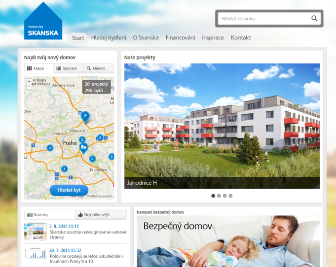 Společnost Skanska spustila v červenci redesignované webové stránky s nabídkou nového bydlení, své místo má na něm i lifestylová sekce „Inspirace“, do níž budou přibývat příspěvky týkající se vybavení bytu, rady související s bezpečným používáním nového domova, ale také rozhovory s lidmi ze Skanska nebo recepty.