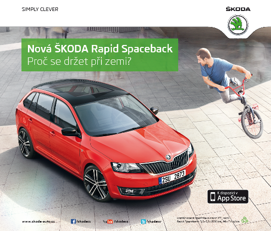 Škoda startuje kampaň na novinku letošního podzimu – model Rapid Spaceback, který byl představen minulý týden na Designbloku. Integrovaná komunikační kampaň s názvem „Proč se držet při zemi?“ bude probíhat v kompletním mediamixu v říjnu a v listopadu. Vzhledem k cílové skupině důležitou roli sehrají především internet a sociální média, kde bude využito netradičních formátů.