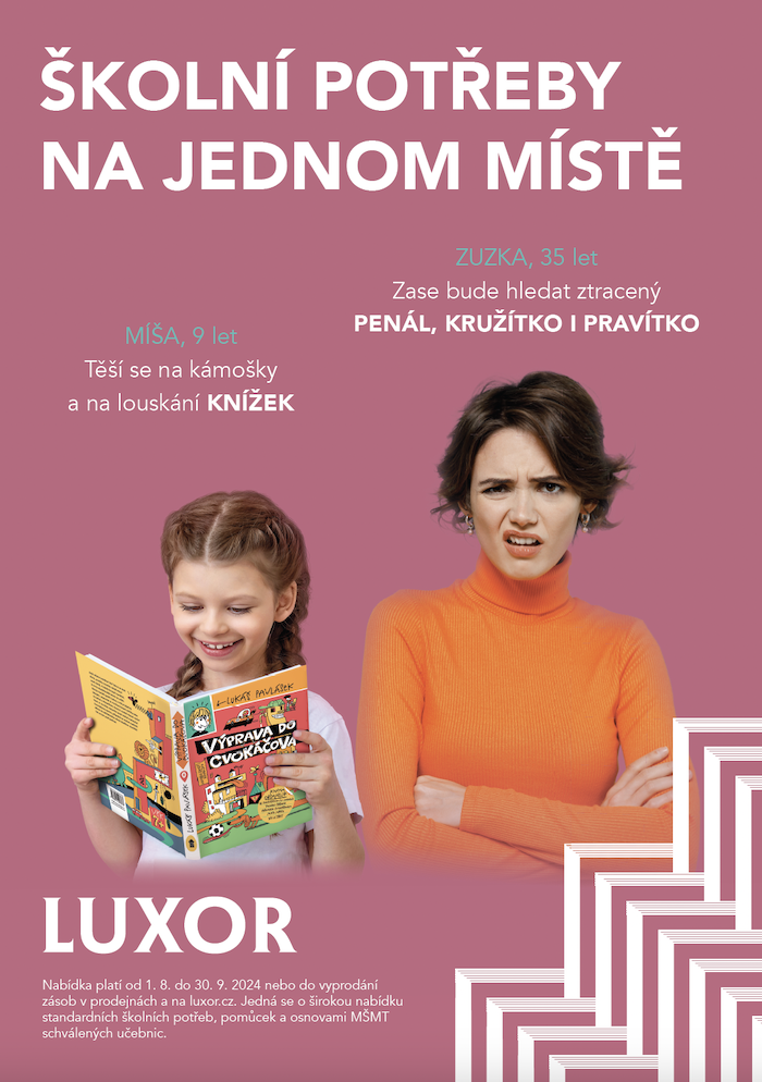 K návratu do škol připravují kampaně již tradičně i velká knihkupectví. Knihkupectví Luxor komunikuje letos nejen šíři sortimentu, ale soustředí se i na situace, které každý rodič dobře zná – od neustálého vymýšlení svačin po hledání ztraceného kružítka či pravítka.