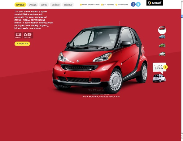 Podobný webový zážitek nabízí americkým návštěvníkům stránek modelu Smart také automobilka Mercedes-Benz.