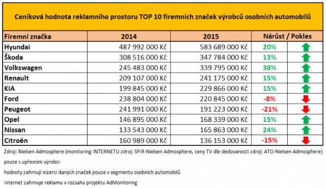 Na českém trhu se značky Škoda a Volkswagen zařadily loni po Huyndai k největším zadavatelům v segmentu výrobců osobních automobilů.