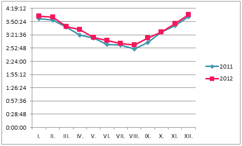 Z pohledu vývoje sledovanosti v jednotlivých měsících loňského roku je zřejmé, že průměrný čas sledovanosti byl loni meziročně vyšší i v divácky nejslabších měsících roku v letních měsících.