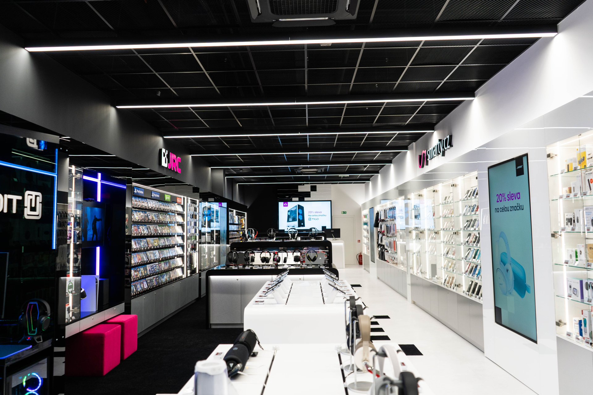 Na prodejnách je největší zájem o mobilní telefony, počítače a jejich příslušenství, dále pak merch a krabicové verze her, především pak na konzole. „Do prodejen jsme umístili zboží, o které je na našich e-shopech a v JRC prodejnách největší zájem. Pokud se bavíme o hardwaru, i většina online nakupujících zákazníků si ho stále raději před zakoupením osahá, vyzkouší a poradí se s odborníkem, což dokazuje nemálo prodejů, které začaly na e-shopu rezervací konkrétního modelu na konkrétní prodejně. A to je případ nejen mobilních telefonů, nebo našich vlastních PC sestav Tigo, které máme na prodejně k vyzkoušení spolu s nejnovějšími PC hrami,“ uvádí Rudolf Konečný.