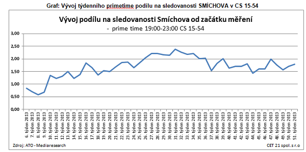 Stanice Smíchov začala vysílat přesně před rokem. Za uplynulý rok dosáhla celodenního průměrného podílu 1,69 % mezi diváky 15-54.