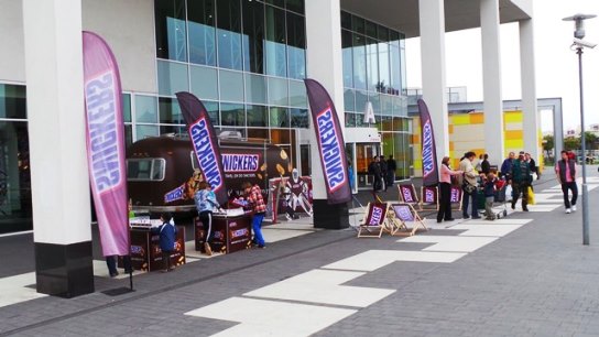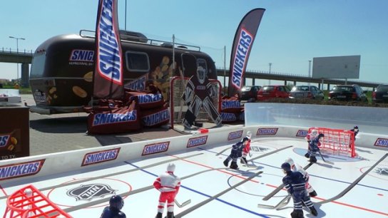 Značka čokoládových tyčinek Snickers vysílá do ulic speciální brandovaný karavan, aby nabídl spotřebitelům nejen vzorky svých produktů, ale i chill out zónu s fatboyi, lehátky, stolním hokejem nebo střelnicí.