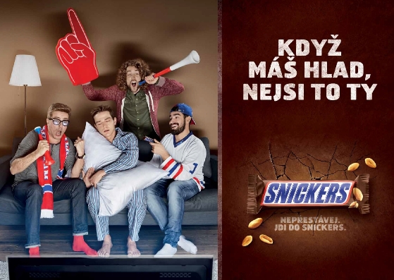Značka Snickers přichází s novou kampaní, vytvořenou lokálně pro český a slovenský trh. Kreativní základ vychází z globálního konceptu značky „Když máš hlad, nejsi to ty“, který je rozpracován do tématu sportovního fanouškovství.
