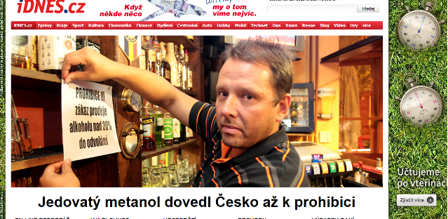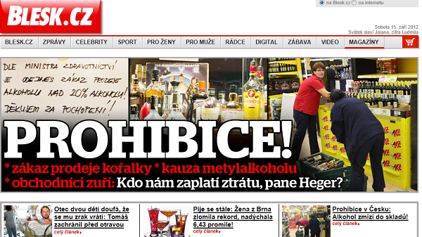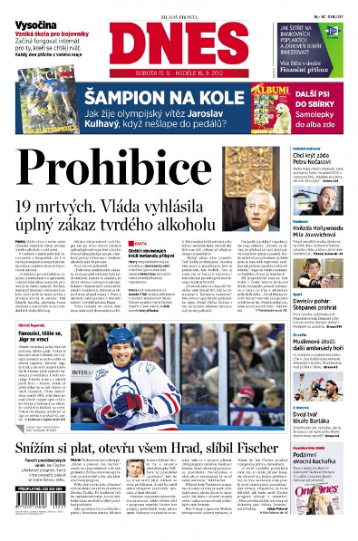 Vládní nařízení o zákazu prodeje lihovin s vyšším než 20% obsahem alkoholu dominuje sobotním vydáním tuzemských tištěných deníků a internetových serverů. Některé z nich dokonce přizpůsobily svoji podobu této mimořádné situaci.