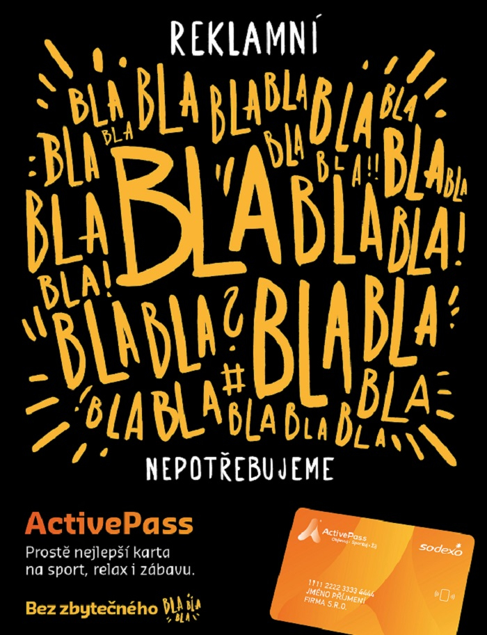 Claim kampaně je „Bez zbytečného blablabla” a staví na myšlence, že všudypřítomné životní motivační citáty v lidech podněcují stres. ActivePass naopak přináší v každodenním životě od stresu úlevu. Motivační texty typu „Každý má šanci změnit svůj život” nebo „Štěstí je klíčem k úspěchu” jsou proto v kampani schválně zlehčeny a nahrazeny variantami konkrétních benefitů.