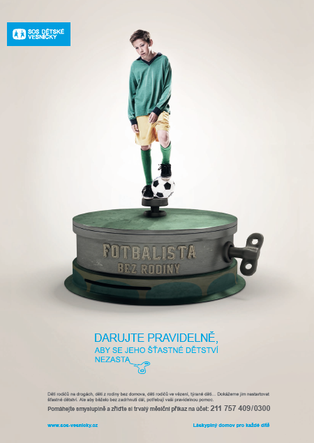 Kampaň, pod kterou je podepsána agentura VCCP, pracuje s motivem hrací skříňky, která stejně jako SOS dětské vesničky potřebuje pravidelně natahovat, aby dobře fungovala.