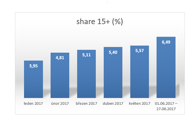 skupině starší 15 let zůstávají Chalupáři. Jejich náskok před