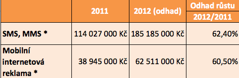 Do průzkumu byly letos z důvodu rostoucího významu zařazeny i mobilní formy reklamy, a to mobilní display a search reklama a inzerce v SMS a MMS zprávách. Údaje za inzertní SMS/MMS poskytli všichni 3 mobilní operátoři. Tyto typy digitální inzerce patří mezi nejdynamičtější a očekává se u nich více než 60% růst.