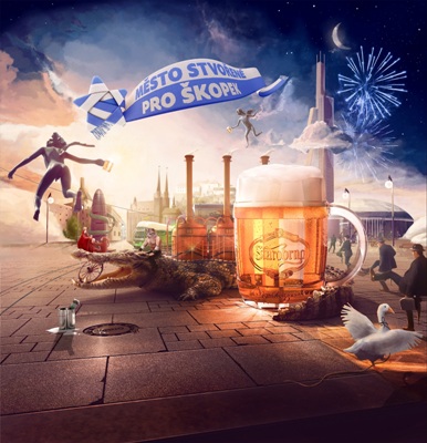 Moravská pivní značka Starobrno v polovině července představila nový vizuál, který využije tisku a outdooru. V hlavní roli tu vystupuje nový Škopek, starobrněnský půllitr od designéra Ronyho Plesla, kterému sekunduje celé defilé brněnských symbolů.