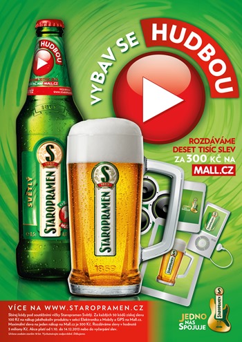 Značka Staropramen a internetová obchodní galerie Mall.cz zahájili cross promotion s názvem „vyBAV SE HUDBOU“. Za nákup piva Staropramen Světlý v obchodech i hospodách mohou zákazníci získat slevu až 500 korun na jakýkoliv produkt v sekcích Elektronika a Mobily&GPS nákupní galerie Mall.cz. Celková částka poskytnutých slev se může vyšplhat až do výše 4 775 000 Kč. Akce potrvá od října do 14. prosince, případně do vyčerpání vyhrazené sumy.