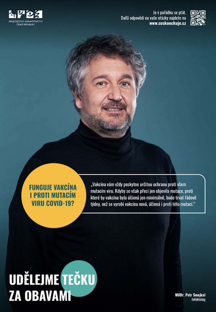 Slogan „Udělejme tečku“ bude mít v kampani různé podoby. „Každý má pro očkování trochu jinou motivaci. Někdo chce udělat tečku za strachem, jiný za vyčerpáním, další za nudou. Ale všichni se shodnou na touze ukončit trápení spojená s pandemií. Očkování nyní představuje jedinou cestu, jak zásadně zlepšit současnou situaci,“ říká Vladimír Vořechovský, ředitel odboru komunikace Úřadu vlády.