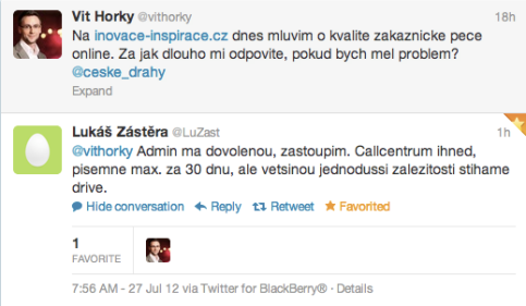 U příležitosti čtvrteční konferenci Inspirace a inovace, kterou uspořádala uprostřed léta agentura Dark Side, se Vít Horký, ředitel společnosti Brand Embassy, rozhodl udělat takový malý průzkum kvality zákaznické péče na sociálních sítích. Cílem průzkumu bylo zjistit, jak rychle dokáží značky zareagovat na zákazníka, který má problém a přímo žádá značku o pomoc.