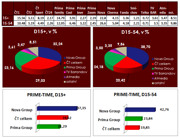 Kriminálka Anděl si vedla nejlépe ze středečních večerních pořadů. Stejně jako v pondělí se jí jako jedinému pořadu z nabídky podařilo překonat hranici jednoho milionu diváků starších 15 let (1 209 tis.). Skupina Nova se rovněž stala nejsilnější skupinou v prime-time v obou cílových skupinách.