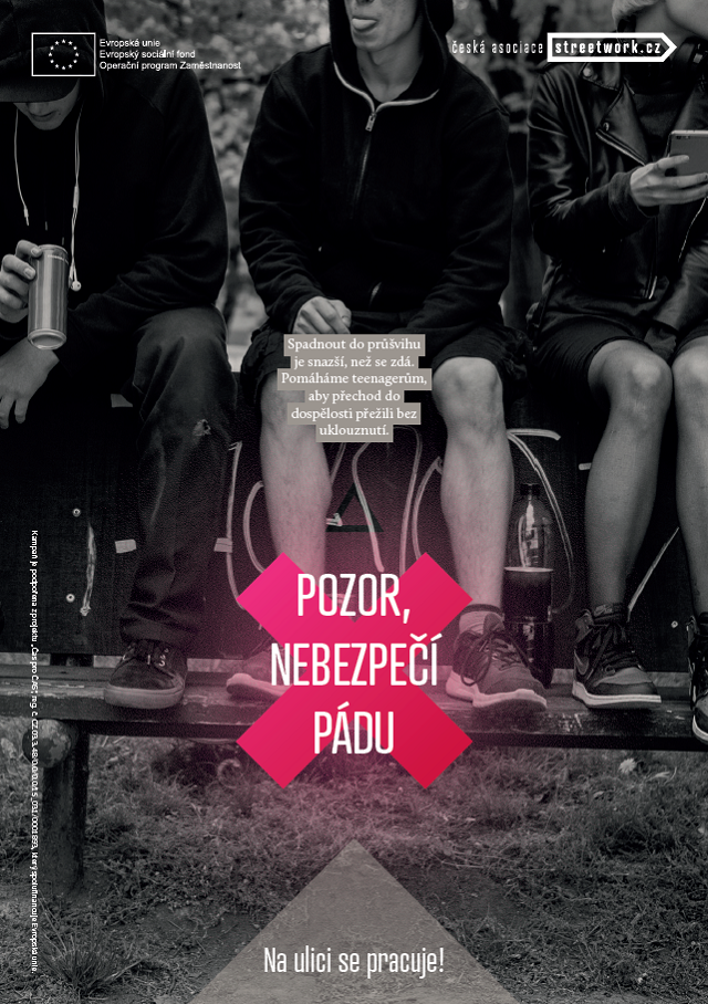 Česká asociace streetwork, zastřešující terénní a nízkoprahové programy, spouští v červnu celorepublikovou kampaň s názvem „Na ulici se pracuje!“. Na plakátech ve veřejném prostoru označených heslem „riziko pádu” ukazuje situace, se kterými se sociální terénní pracovníci setkávají nejčastěji u dnešní mládeže. Zároveň chce vyvrátit mýty o jejich práci jako takové. „Česká veřejnost si ještě stále zaměňuje streetwork s výměnou použitých injekčních jehel za nové. Stejně jako v zahraničí i u nás terénní sociální pracovník obsáhne celou řadu cílových skupin – od uživatelů drog a osob poskytující sexuální služby přes lidi bez přístřeší po ohrožené děti a mládež,” uvádí Martina Zikmundová, ředitelka České asociace streetwork.