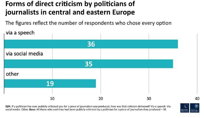 Většina nezávislých novinářů (63 %) ve střední a východní Evropě sklidila od politiků kritiku za svou novinařinu. Útoky ale nevycházejí jen od politiků, ale také od konkurenčních novinářů, kteří pracují pro provládní média. Vyplývá to z nové studie Fighting Words: Journalism Under Assault in Central and Eastern Europe od Reuters Institute, která se zaměřila na postavení nezávislých novinářů ve střední a východní Evropě.
