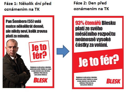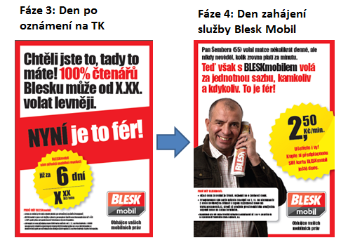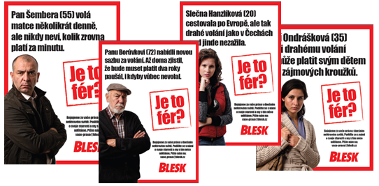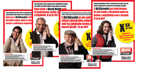 Na tiskové konferenci zástupci vydavatelství Ringier Axel Springer CZ, které začne od 7. listopadu Blesk Mobil nabízet, opakovaně uváděli, že kromě snahy nalézt další možné zdroje příjmů pro firmu reagují na nespokojenost čtenářů Blesku a obyvatel se současnou ekonomickou a politickou situací. Také inzertní vizuály k nové službě, otištěné v deníku Blesk, vyzývaly čtenáře, aby zasílali své příběhy a zkušenosti s telekomunikačními službami. Typy nespokojených čtenářů se tak staly hlavní součástí tiskové kampaně v úvodní fázi, jejich spokojenost pak v její závěrečné fázi.
