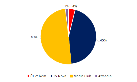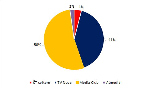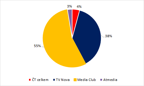 Komerční televizní prostor ovládají v Česku dva subjekty: skupina Nova a Media Club, zastupující mj. televizní skupiny Prima, Barrandov a také Óčko. Obě se v součtu dělí o cca 94 % odvysílaných TRP. Pro MediaClub je určující cílová skupina 15-69, pro TV Nova divácká skupina 15-54. V meziročním srovnání počet odvysílaných TRP nejvíce navýšil Media Club v divácké skupině starší 15 let (+14 %) a v divácké skupině 15-69 (+11,5 %). Navýšení v případě skupiny Nova je v těchto diváckých skupinách na úrovni 2,5 %. Ve skupině diváků 15-54 se počet odvysílaných TRP snížil u všech obchodních uskupení s výjimkou Media Clubu (+5 %).