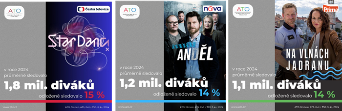 Data o TV sledovanosti za poslední rok také ukazují, že filmy a seriály se také sledují až po jejich živém odvysílání, tzv. „odloženě“. To se projevuje nárůstem tzv. „odložené“ sledovanosti. Z celkové TV sledovanosti na televizorech tvořila v roce 2024 (leden–říjen) v cílové skupině 15+ odložená sledovanost v prvních třech dnech po odvysílání pořadu 11 %. U některých pořadů, např. StarDance nebo Kriminálka Anděl, dosahuje ale až 15 %, resp. 14 % (viz obrázek výše). Živé vysílání však zůstává zásadní pro sledování sportu a zpráv, politických diskusí či reality show.