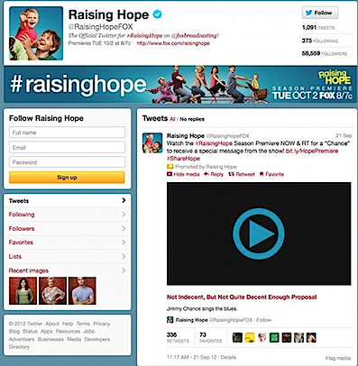 Na druhé světově nejrozšířenější sociální síti Twitter se poprvé vysílá díl televizního seriálu, a to ještě před tím, než bude nabídnut televizním divákům. Americká stanice Fox se tak rozhodla uvést třetí řadu svého seriálu Raising Hope. Přestože televizní premiéru bude mít nová řada seriálu až v úterý 2. října, na Twitteru už byl děj premiérového dílu k vidění během úterý 25. září a měl by být k dispozici ke zhlédnutí až do čtvrtečního poledne.