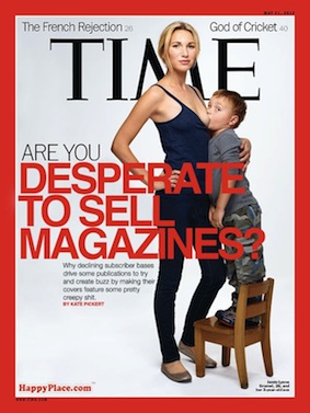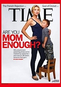 Obálka nového čísla časopisu Time vyvolala v USA rozporuplné reakce. Šestadvacetiletá matka v domácnosti Jamie Lynne Grumetová na ní kojí téměř čtyřletého syna a časopis fotografií upozorňuje na téma rodičovství a výchovy dětí.