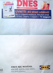 Aktuální kampaň společnosti Ikea, kterou pro firmu připravila agentura Kaspen/Jung von Matt, podporuje vydání nového katalogu mj. i nestandardní kampaní v tištěných médiích. Čtyřstranné speciální přebaly deníků MF Dnes a Lidové noviny, ve kterých absentuje text s výjimkou upozornění, že jedinou skutečnou událostí je vydání katalogu Ikea, nabízejí důvod pro ohlédnutí se za předcházejícími podobnými inzertními aktivitami mezi českými zpravodajskými deníky.